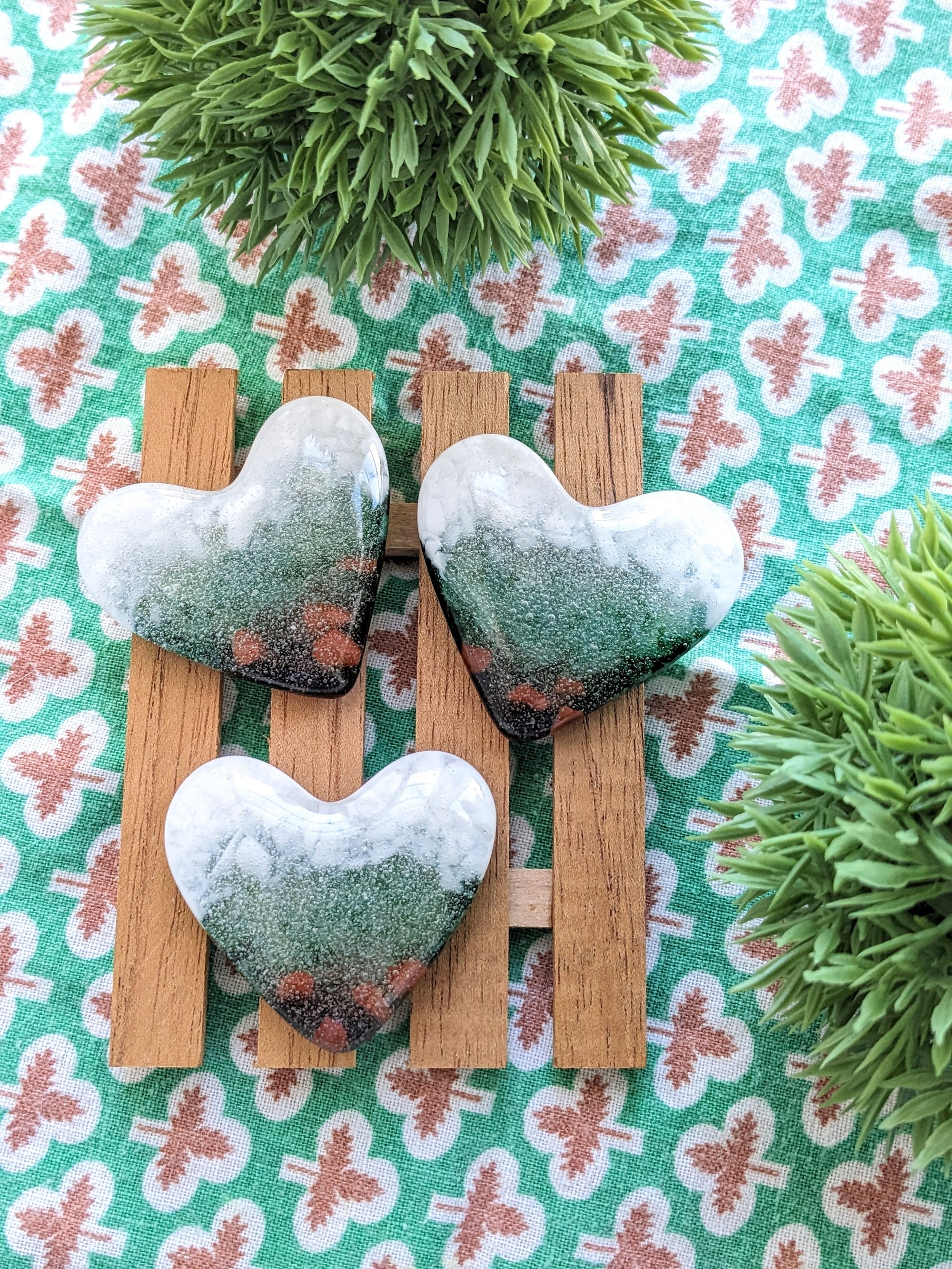 These hearts are like holding a piece of the sea or the lake in the palm of your hand. The hearts are both indoor and outdoor so work well on a window sill, patio table or nestled in a potted plant.