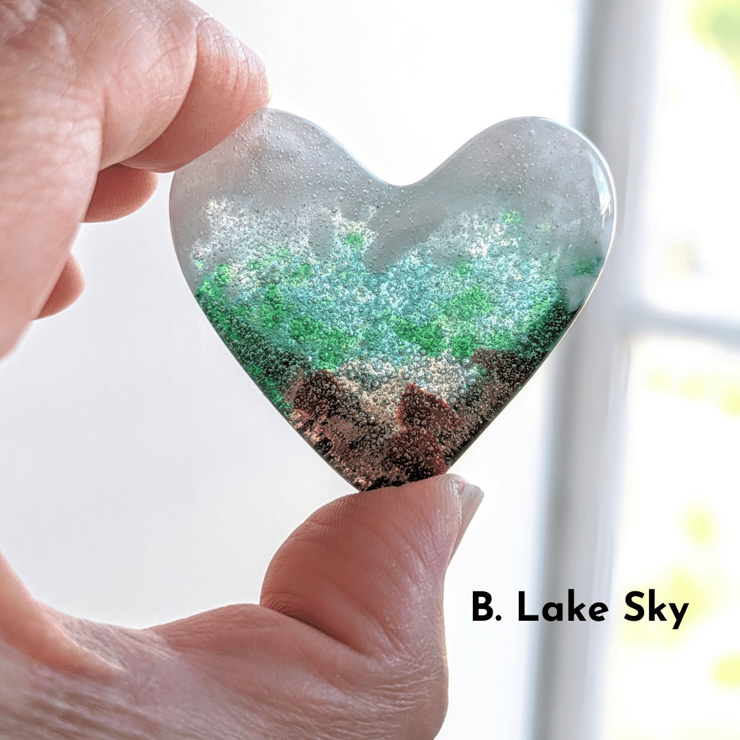 Lake Sky and Ocean Sky Fused Glass Hearts