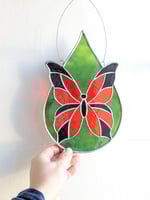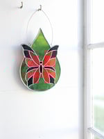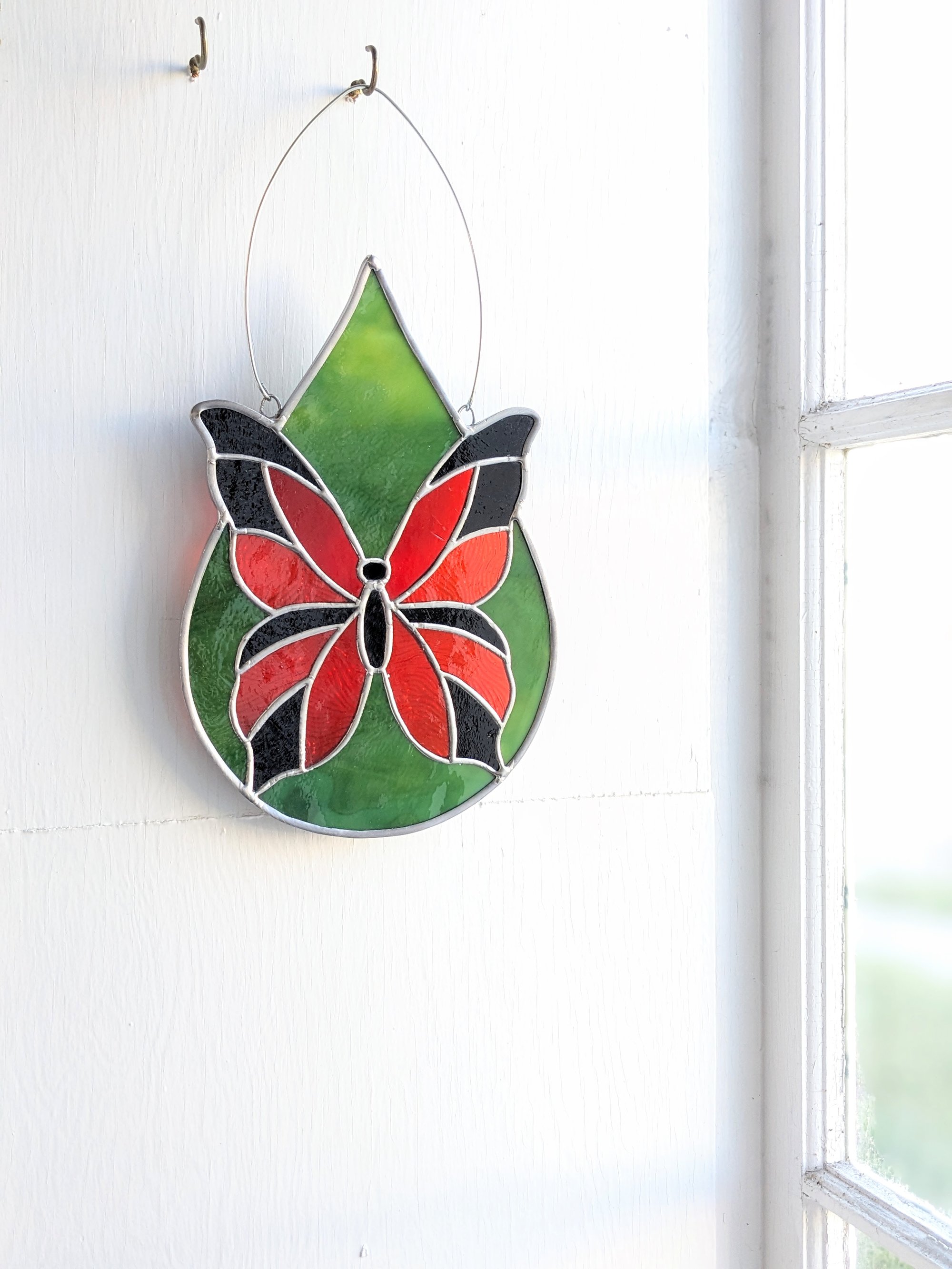 Materials: Stained glass, copper foil, lead frame, lead solder, metal hook.